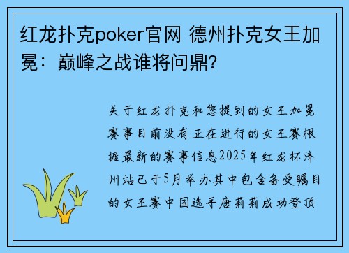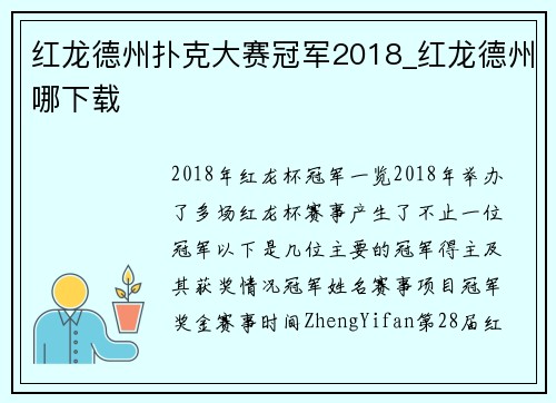 阅读关于“红龙扑克骗局视频大全”,目前网络上似乎没有现成的完整视频合集。我为你整理了一些与扑克骗局高度相关的视频线索和防范知识,希望能帮助你更好地了解相关问题。 扑克骗局相关视频线索 虽然没有找到直接的...